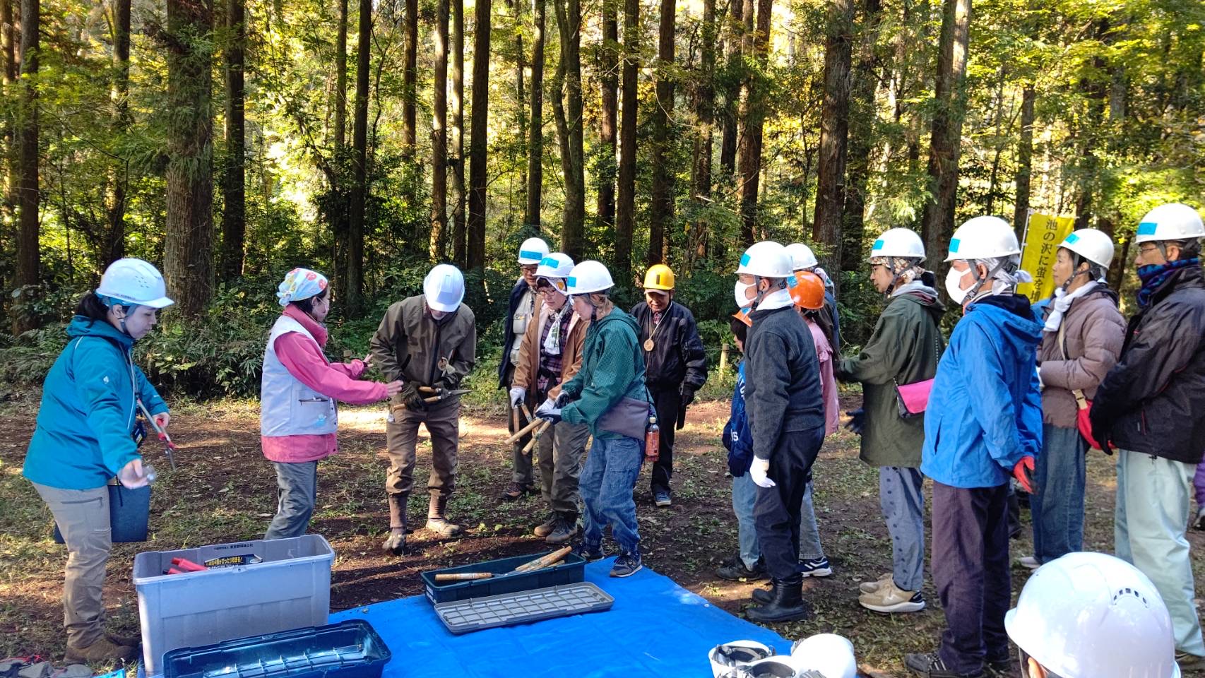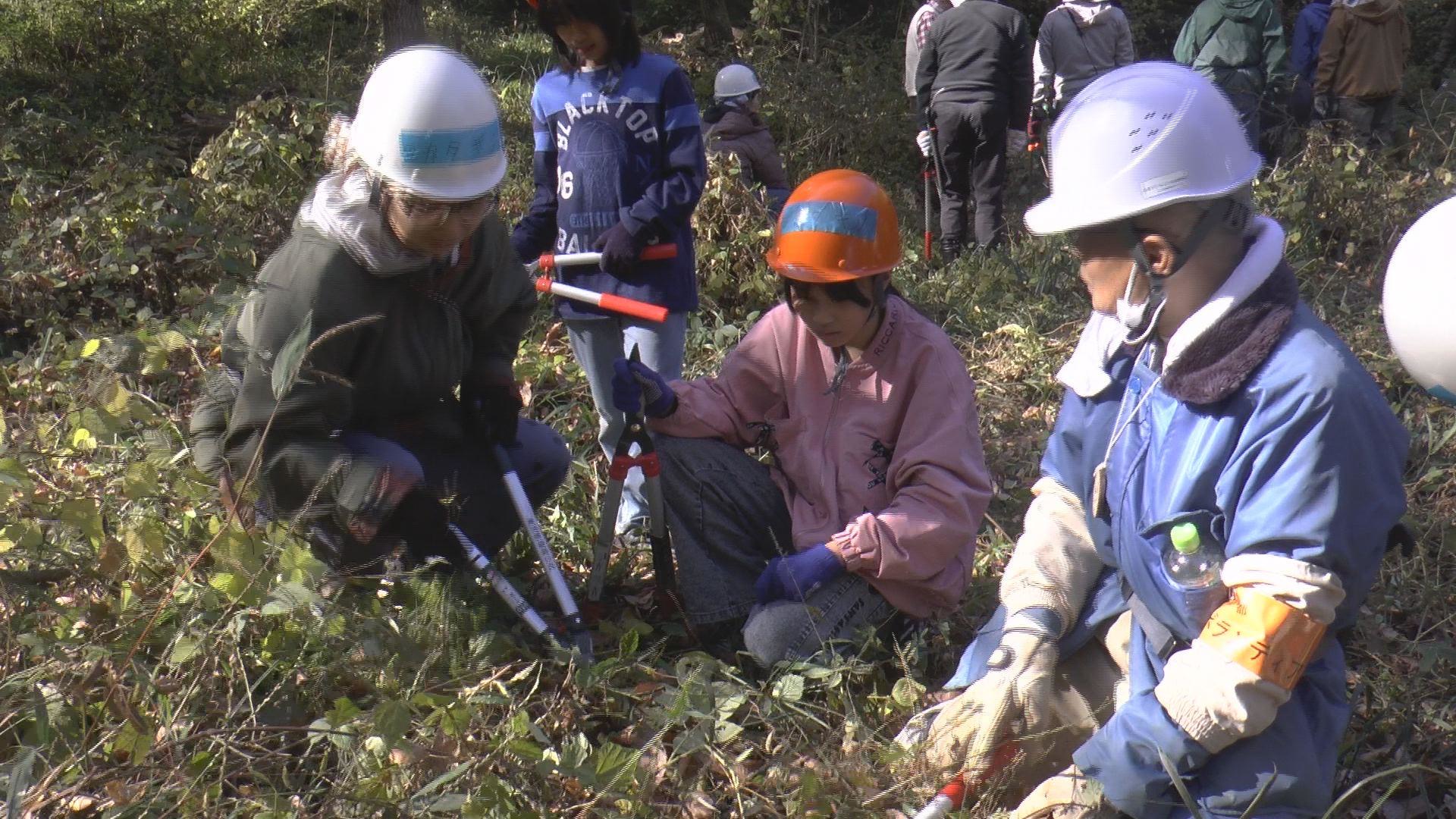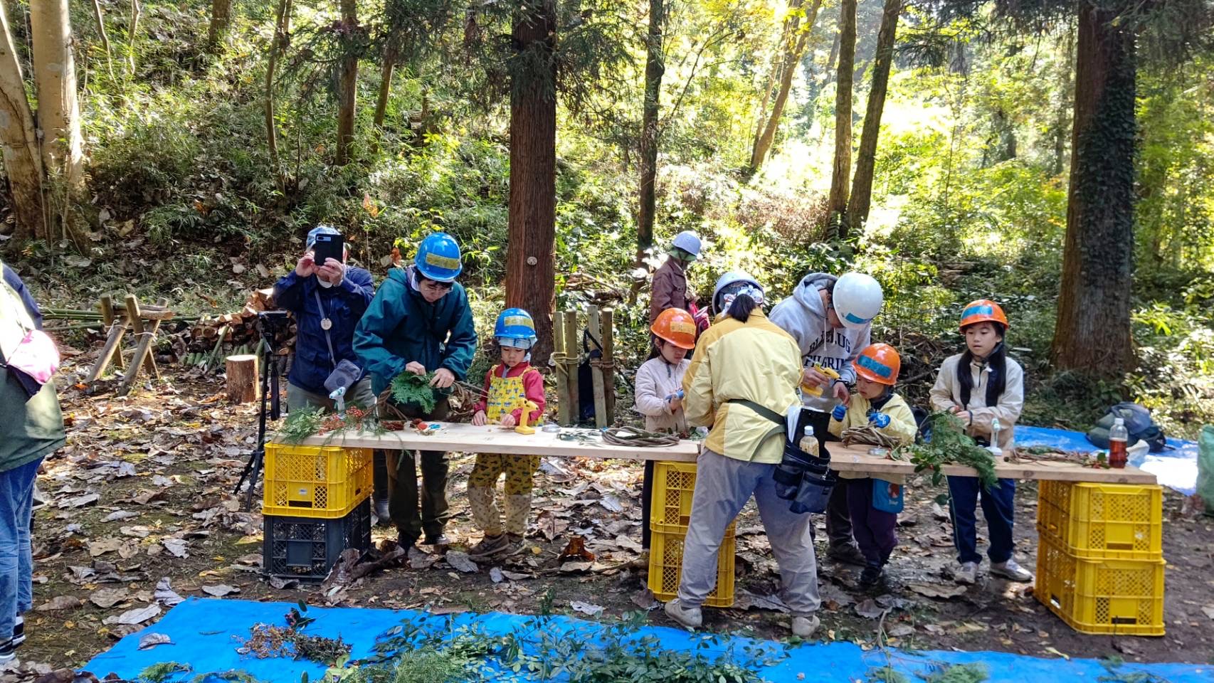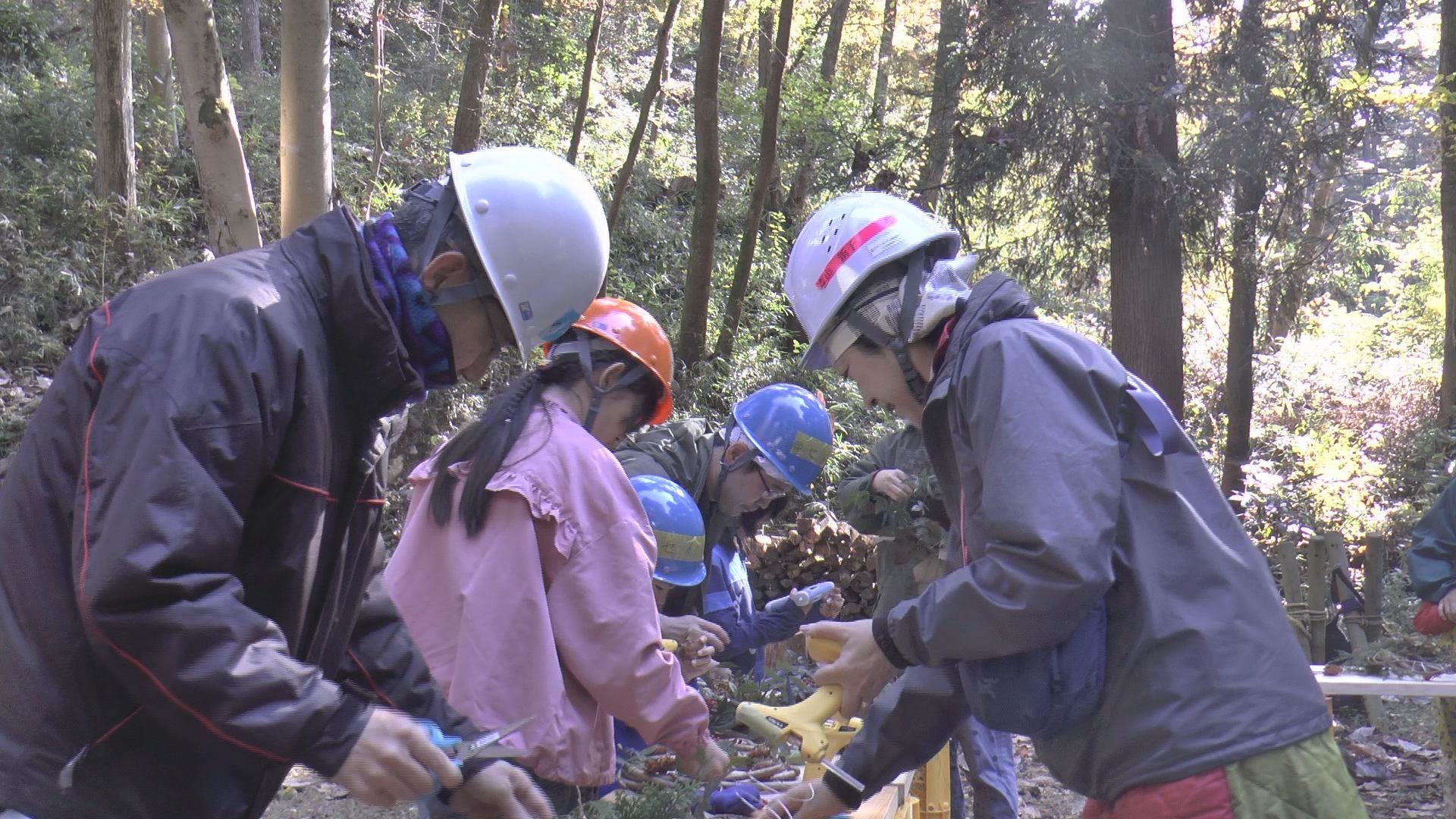 晴天の中、リース作り、自然観察・草刈・樹木の伐採・薪割りなど。 参加された方からは、始めて体験したので楽しい思い出になりました! 是非、来年もリース作りに来たい!との声をいただきました。
